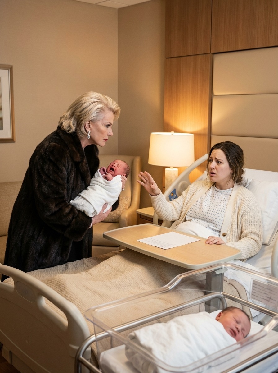 Acababa de sobrevivir a una cesárea de emergencia cuando mi suegra entró en mi habitación de recuperación, dejó unos papeles de adopción sobre mi cama y, con toda tranquilidad, me dijo que se llevaba a mi hijo recién nacido para su hija. Luego me llamó inestable e intenté poner a seguridad en mi contra. Lo que ella no sabía era que llevaba años ocultando mi verdadera identidad, y en el momento en que el jefe reconoció mi nombre, todo cambió.