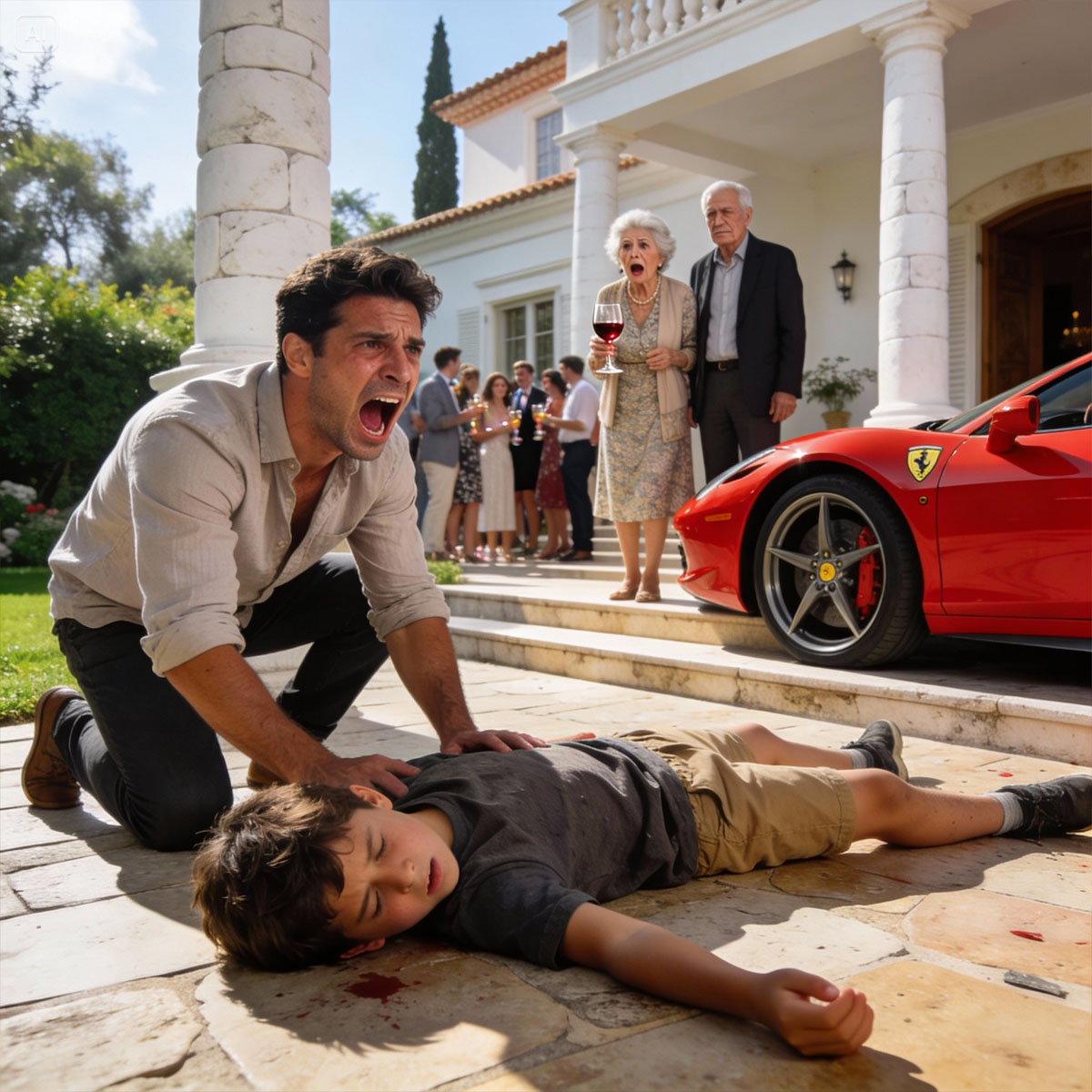 Un Ferrari rojo, brillante, entró al camino de grava como si fuera una pasarela privada. Era del invitado estrella: Rodolfo Bianchi, un empresario italiano con contactos y ego enorme. El coche aceleró de más para impresionar… y Mateo, que jugaba cerca de la entrada con una pelota, dio un paso al frente.