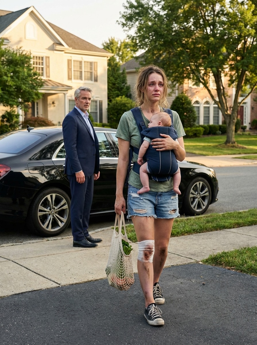 "¿Dónde está tu coche?" La voz de mi padre era como hielo mientras miraba mi tobillo hinchado y morado y las pesadas bolsas de la compra que arrastraba mientras abrazaba a mi bebé. Susurré la verdad: que mi suegra me había quitado las llaves para mantenerme atrapado. No gritó. Él simplemente abrió la puerta y dijo: "Entra. Esta noche, arreglamos esto." No tenían ni idea de quién era realmente mi padre—hasta que llegó.