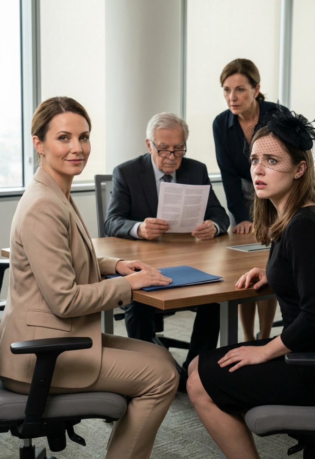 Me senté frente a ella con un sencillo blazer beige, las manos cuidadosamente cruzadas sobre la mesa de madera pulida, optando por no mirarla a los ojos todavía mientras observaba el tráfico que circulaba por las calles de Maple Ridge, con la luz del sol reflejándose en los parabrisas como si nada en mi mundo se hubiera derrumbado tres semanas antes, cuando mi esposo murió en una autopista a las afueras de Austin, dejando tras de sí un matrimonio roto, un amante inquieto y más mentiras que verdad.