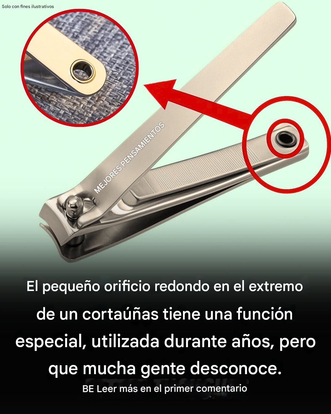 Ese pequeño orificio redondo no es casualidad. Desempeña un papel fundamental en el funcionamiento del cortaúñas.