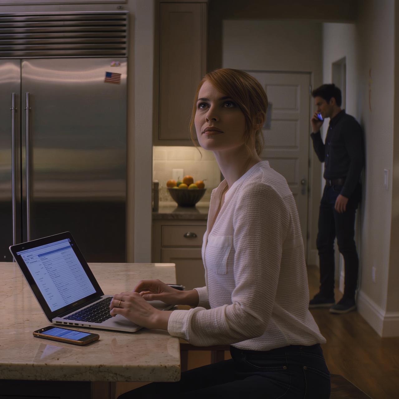 El pasillo estaba en penumbra, plateado por la luna. Las siluetas de los muebles y las fotos enmarcadas se suavizaban en sombras. Pude ver la tenue silueta de Dean cerca del final del pasillo, ligeramente girado, con el teléfono pegado a la oreja. Su postura era relajada, como si perteneciera al momento, como si no hubiera nada arriesgado en hablar a esas horas.