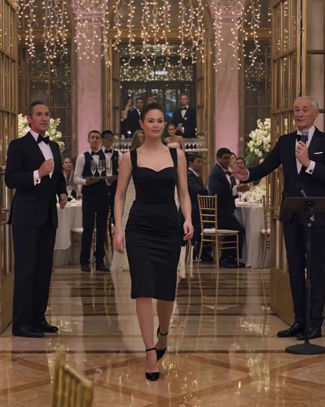 En la boda de mi hermana, mi padre me hizo sentar con el personal y bromeó: "Al menos estás vestida para servir bebidas". Los invitados se rieron. Tomé una botella de champán, serví las bebidas y me fui en silencio. Una hora después, el encargado del local paró la música, señaló a mi padre y anunció: "El dueño te llama".