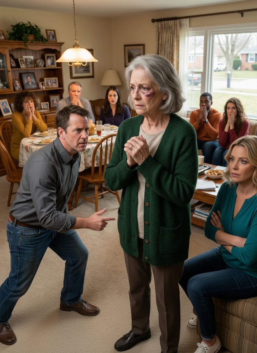 Entré en la habitación el día de mi septuagésimo cumpleaños con un moretón oscuro palpitando bajo el ojo, y la risa se desvaneció en un instante. Alguien murmuró: "¿Qué pasó?". No tuve oportunidad de responder. Mi hijo habló primero. "Mi esposa", dijo sin emoción. "Le dio una lección". Su esposa no discutió, sonrió. Entonces mi otro hijo dio un paso al frente y dijo algo que rompió el silencio para siempre.
