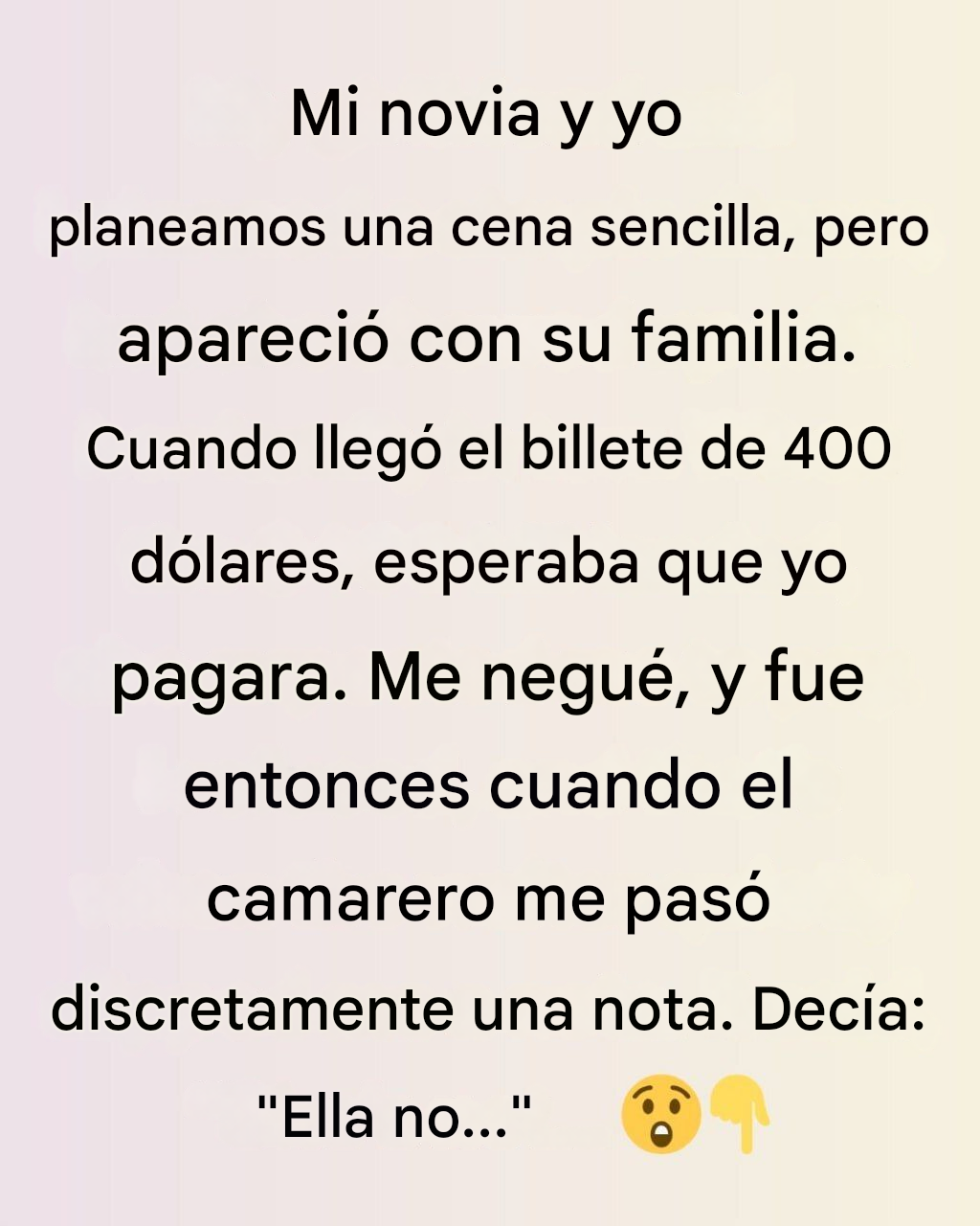 Mencionó, más de una vez, que causaría una gran impresión si yo pagaba la cena.