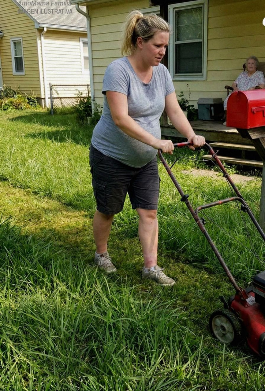 Fue entonces cuando vi a la señora Higgins en la puerta de al lado. Tenía 82 años, el pelo siempre recogido y solía estar sentada en el porche con un crucigrama. Pero hoy estaba en el césped, encorvada detrás de un antiguo cortacésped, empujando con las dos manos.