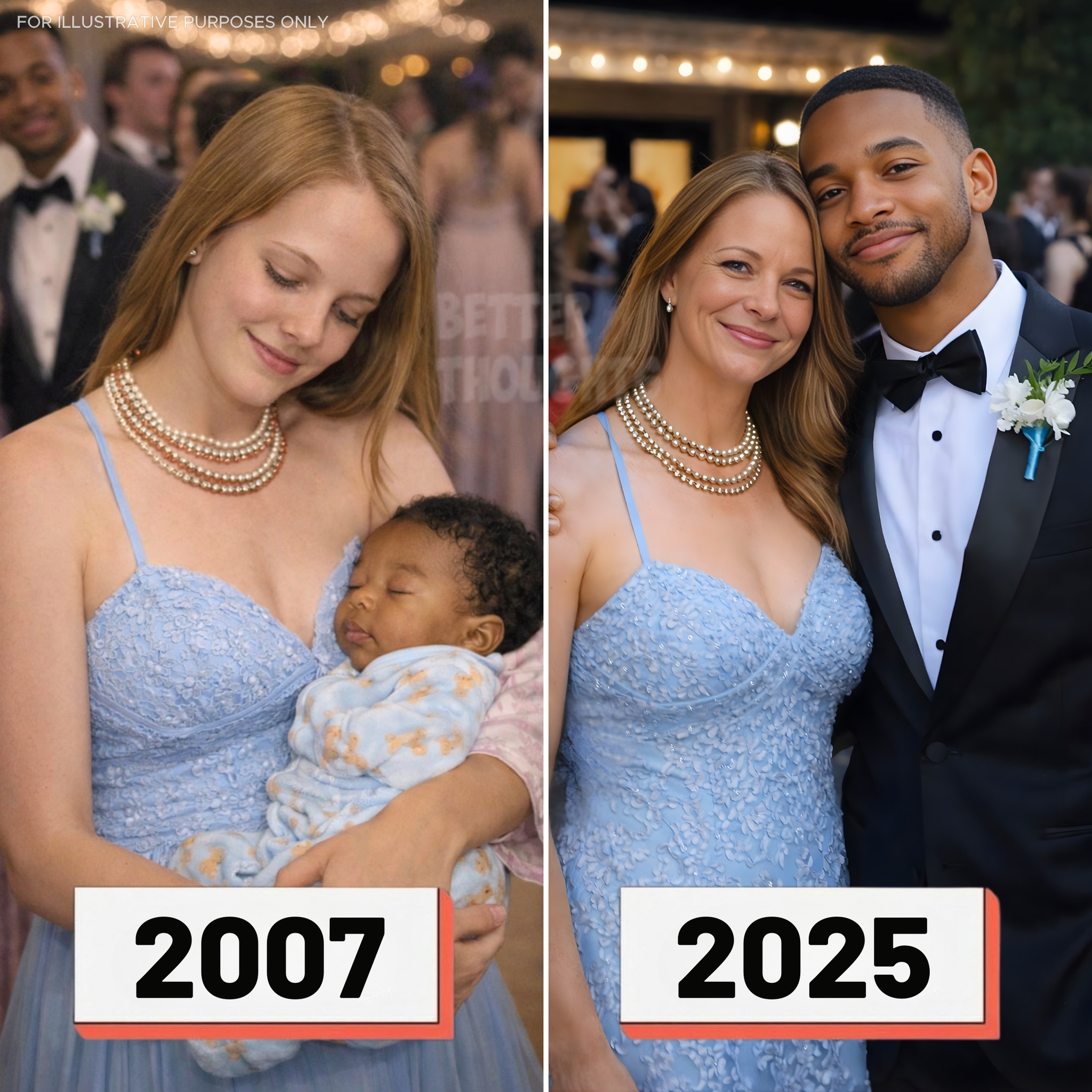 Para cuando llegó la temporada de graduación de su último año, trabajaba doble turno en un restaurante, con los pies hinchados, la espalda dolorida, ahorrando propinas en una lata de café etiquetada como PAÑALES. Su vestido de purpurina permaneció en una percha en el fondo del armario hasta que un día lo donó discretamente.