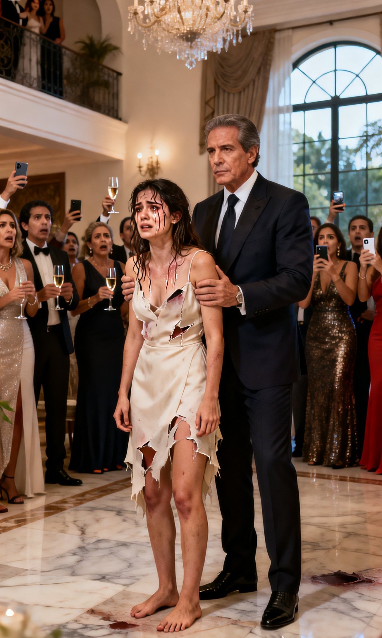 Los invitados formaron un círculo. Algunos sacaron sus teléfonos para grabar. Otros susurraban con desprecio. Sentí manos sujetándome con fuerza. Beatriz y Natalia me rasgaron el vestido. La tela cedió. Mi piel quedó expuesta. Más de doscientas personas mirándome llorar, temblar, intentando cubrirme y salvar la poca dignidad que me quedaba.