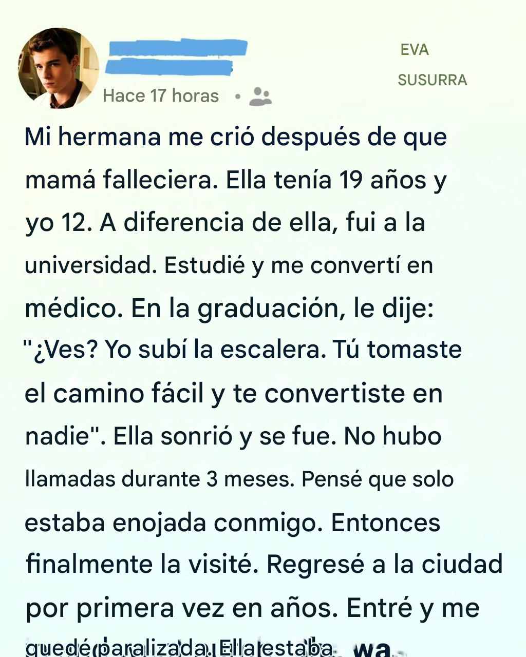 Tenía doce años cuando falleció nuestra madre, una edad en la que el mundo aún se siente sólido y permanente, hasta que de repente deja de serlo. Recuerdo con claridad el pasillo del hospital. El penetrante olor a antiséptico. El zumbido de las luces en el techo. La forma en que los adultos hablaban en voz baja, como si el silencio mismo pudiera suavizar el dolor.
