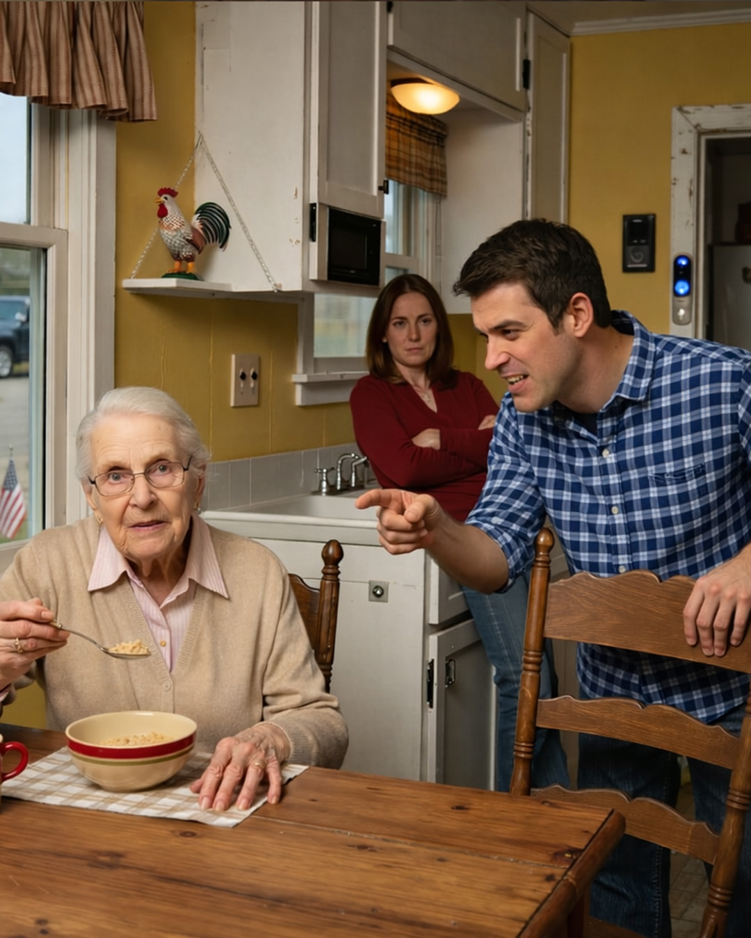 Jake me miró fijamente a los ojos, con la mano apoyada con indiferencia en el respaldo de la silla de la cocina, la misma silla que su padre construyó hacía cuarenta y siete años. Apenas había terminado su café. Rebecca, su esposa, estaba en el fregadero, fingiendo enjuagar algo que no necesitaba enjuague, evitando mis ojos como siempre.