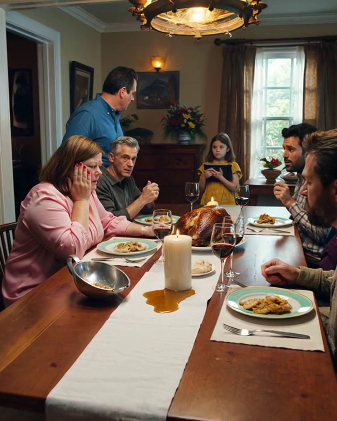 Mi esposo me abofeteó delante de toda su familia en Acción de Gracias… pero entonces mi hija Emma se adelantó con su tableta y pronunció cinco palabras que silenciaron a toda la sala e hicieron que el rostro de mi esposo palideciera de terror.