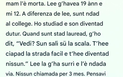 La mia surela la m’ha cressü. La g’ho ciamada nissun. Poeu g’ho imparà la verità che g’ha cambià tüt