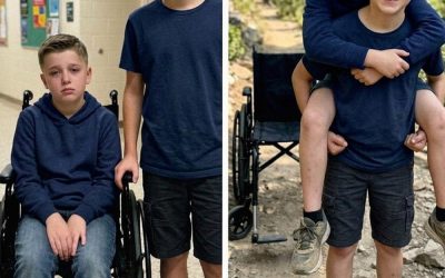 Durante un viaje de campamento, mi hijo de 12 años cargó a su amigo en silla de ruedas sobre su espalda para que no se sintiera excluido. Al día siguiente, el director me llamó y me dijo: "Tienes que ir corriendo a la escuela ahora mismo".