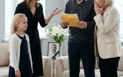 LlamĂ© a mis padres para decirles que mi esposo habĂa fallecido, pero estaban demasiado ocupados celebrando el cumpleaños de mi hermana. DĂas despuĂ©s, aparecieron exigiendo la mitad de su herencia, hasta que mi hija de 8 años les entregĂł un sobre que les hizo temblar las manos.