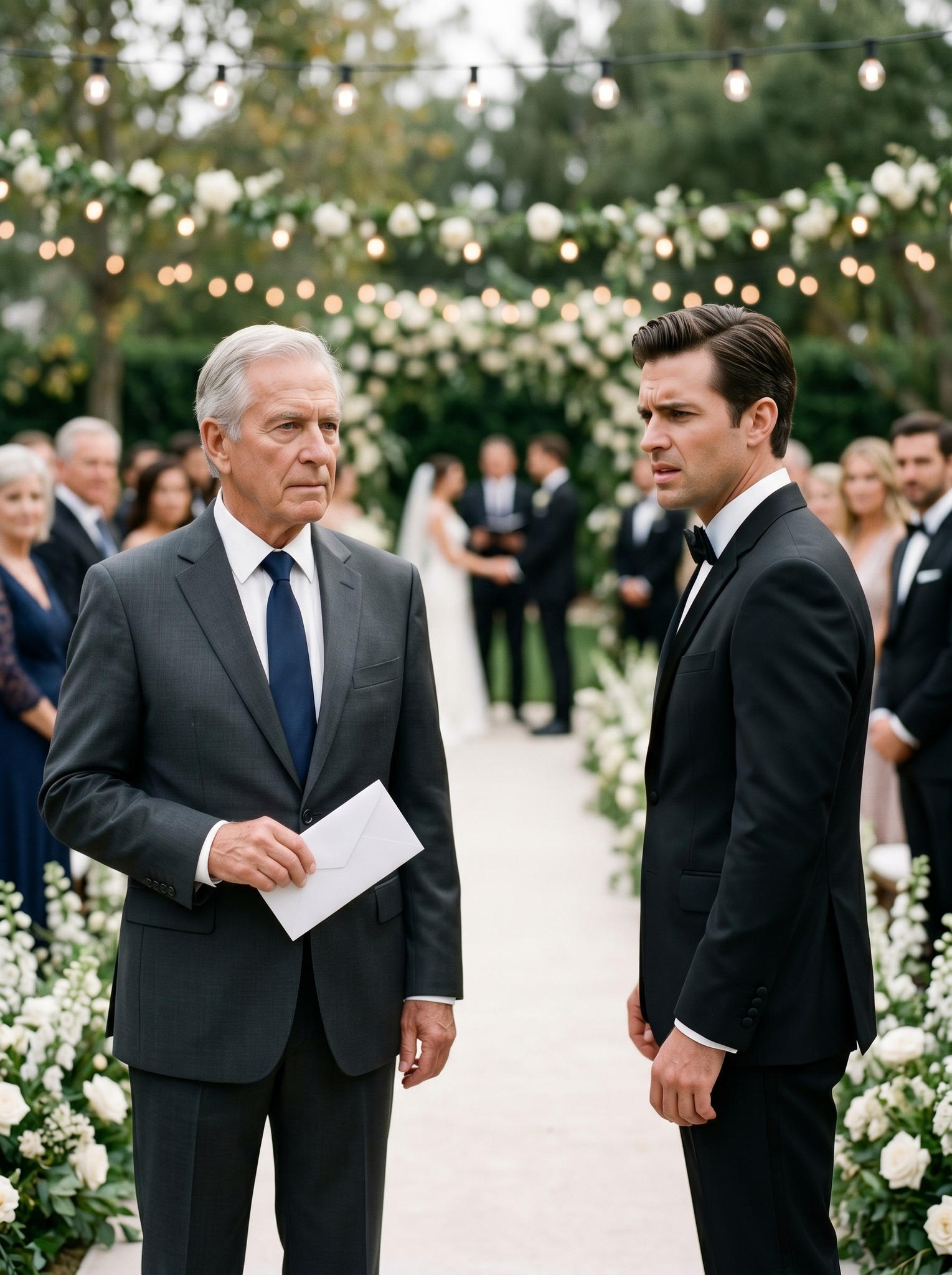 G’havevi no ün invito fisico, ma pensavi che vess el pà del sposo l’era una credenzial sufisent per superà. Quand sunt stad visin a la stasiün del check-in, Wesley l’è vegnü föra de la sala principal cun ün smoking su misura cun i cavei tajad indrè in ün stil perfet.