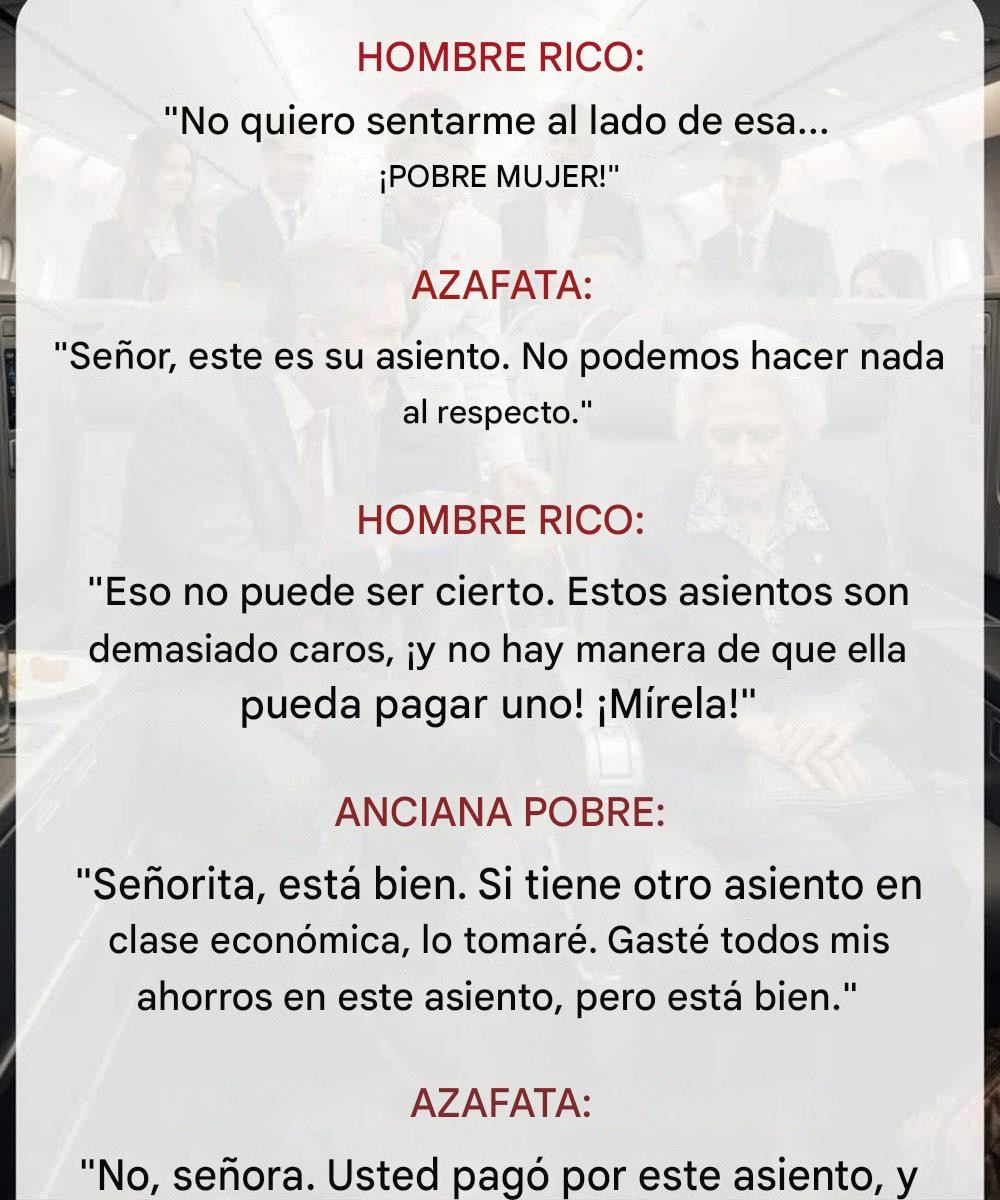 Stella bajó la mirada, avergonzada. Se había puesto su mejor ropa, aunque no fuera elegante. Algunos pasajeros apoyaron a Franklin y le sugirieron que se cambiara de asiento. Sintiéndose insignificante, Stella dijo en voz baja: «Señorita, no se preocupe. Si hay un asiento en clase económica, lo tomaré. Usé todos mis ahorros para este asiento, pero no quiero molestar a nadie».