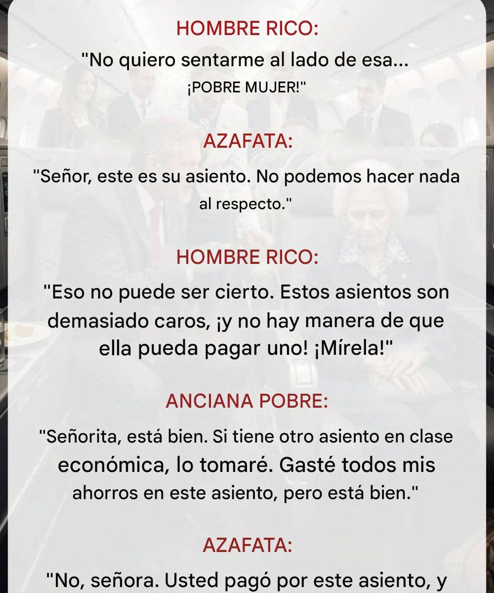 Pero la azafata negó con la cabeza. «No, señora. Usted pagó por este asiento y tiene todo el derecho a estar aquí, digan lo que digan los demás».
