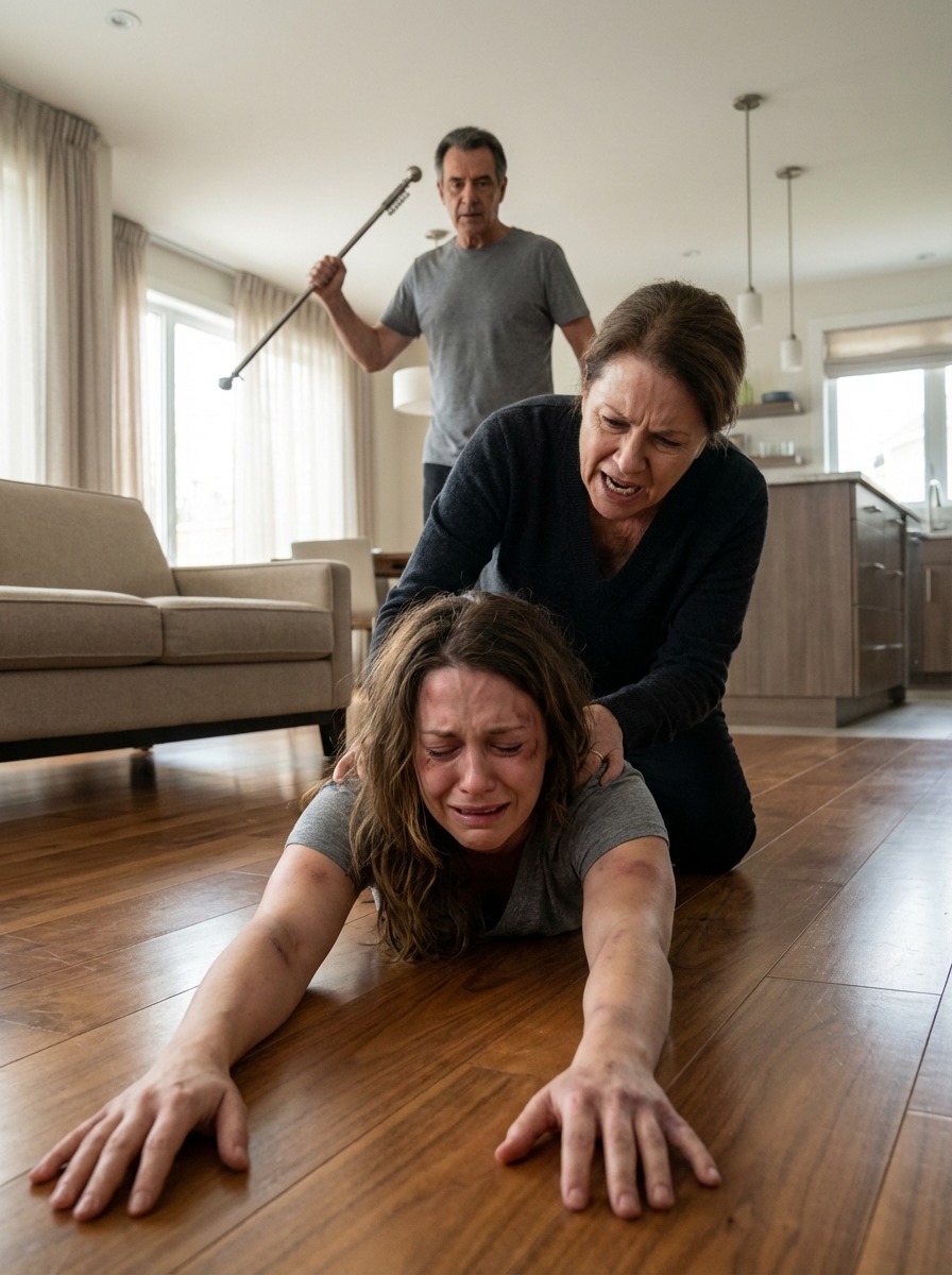 El dolor transformó el mundo en fragmentos de tela del sofá contra mi mejilla y Franklin respirando por la nariz como si levantara algo pesado. Mi propia voz se apagó de una forma que no reconocí, mientras el sonido húmedo del metal rozando la piel llenaba la habitación silenciosa.