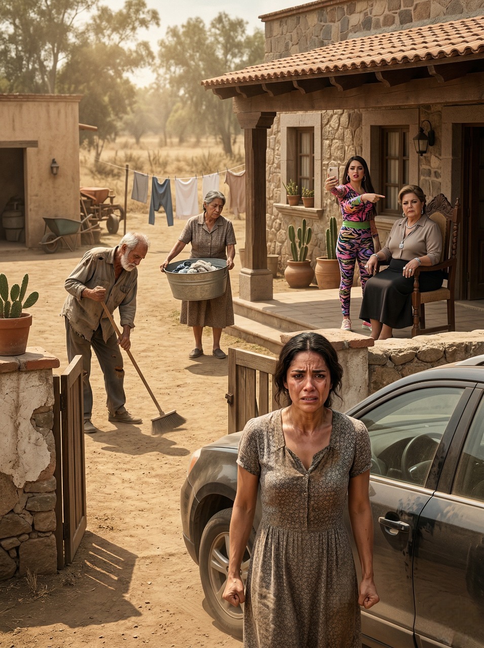 Me quedé inmóvil dentro del coche, con las manos clavadas al volante y el motor apagado, como si cualquier sonido pudiera romper el mal sueño y convertirlo en algo todavía peor. Pero no era un sueño. Ahí estaba don Ernesto, mi padre, el hombre que de joven podía cargar costales como si fueran almohadas y que me alzó sobre sus hombros para que yo tocara las campanas de la iglesia en la fiesta del santo patrono. Ahora se veía encorvado, flaco, con las piernas temblando, barriendo despacio mientras el polvo se levantaba alrededor de sus zapatos viejos.